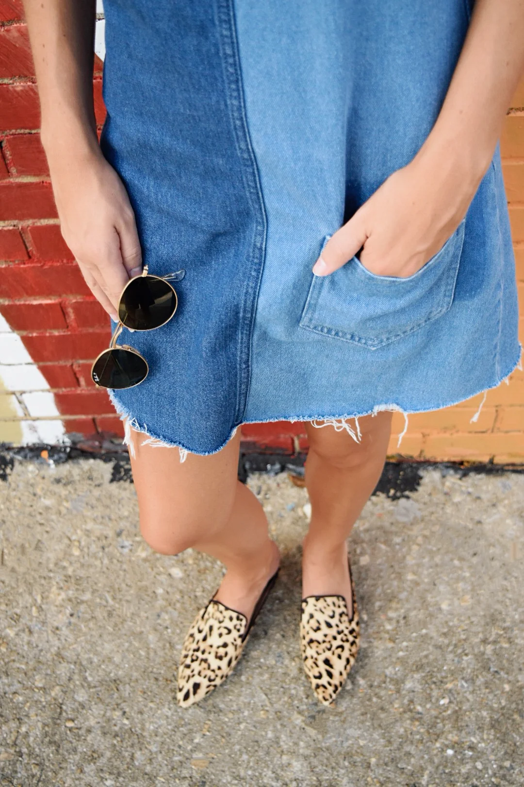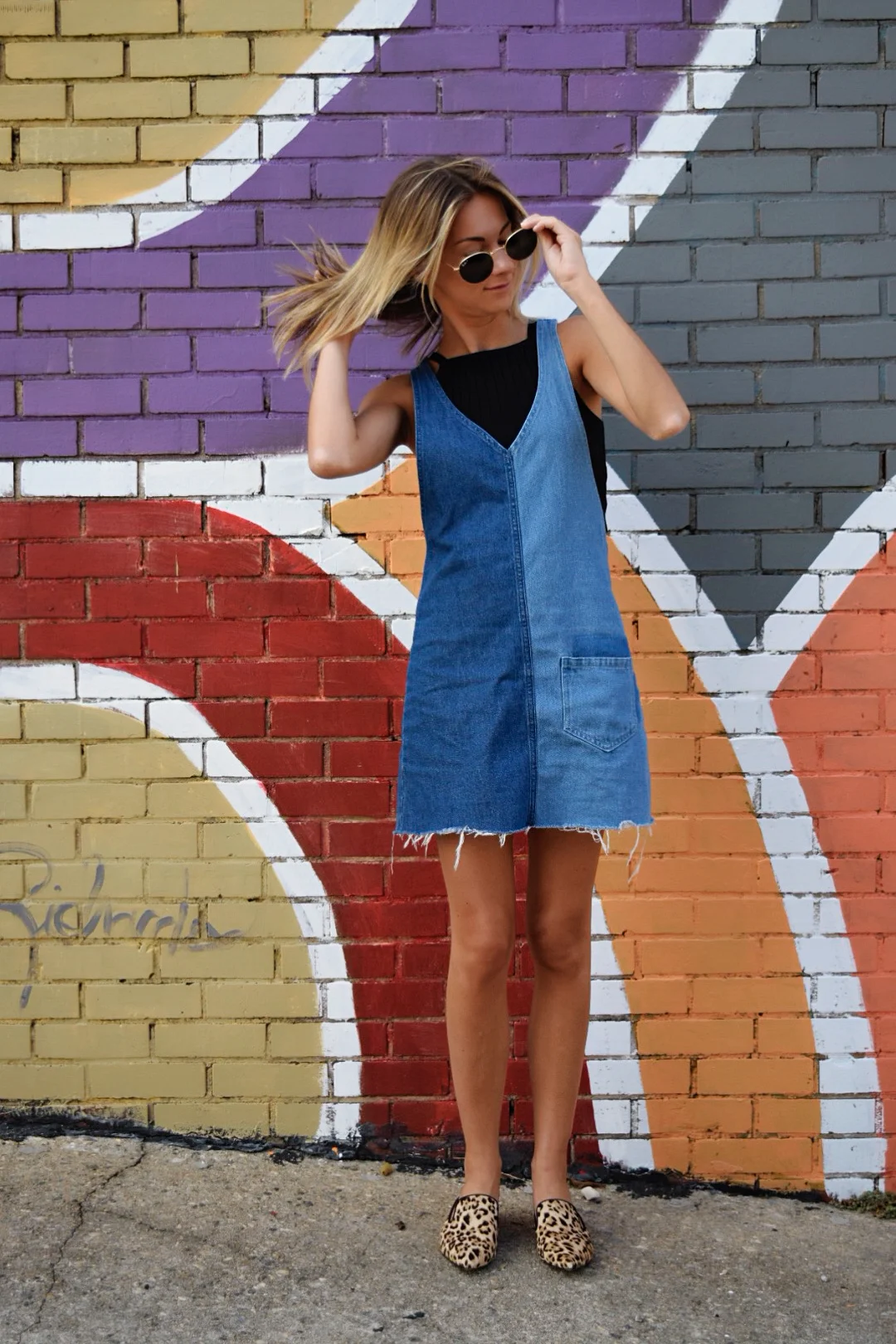There's nothing better than cheetah print and nothing worse than a Monday but I think Monday will be a tiny bit better now that I can combat it with a cute outfit! Super in love with this adorable jean dress from H&M and the top from forever 21! I'm currently obsessed with my new Sam Edelman leopard gold heel mules. I wore this to the John Mayer concert and it was sooooo perfect!
